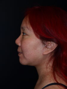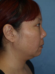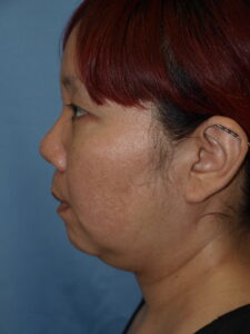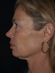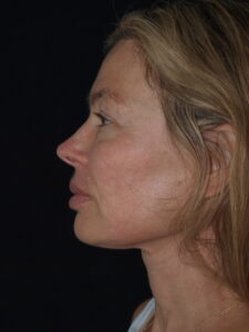 73yo female shown 4 weeks following neck lift with platysmaplasty (tightening of neck muscles)