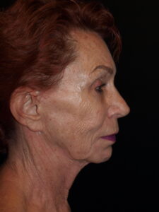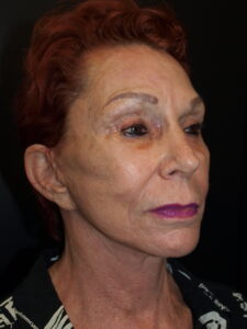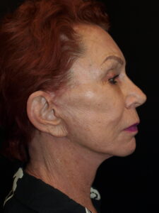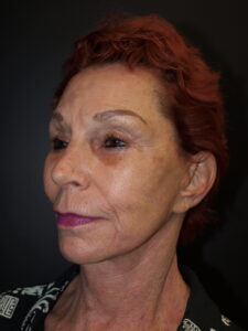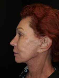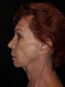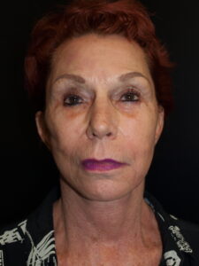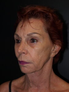 50yo female shown 3 weeks after mini- facelift, VERSA tissue fillers to cheeks, nasolabial folds and lips and PIXEL fractional laser resurfacing.