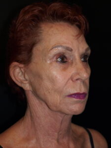 56 year old desiring natural looking but noticeable facial rejuvenation and longer lasting improvement than what Botox, fillers and non- surgical skin tightening can achieve. Results are one month following mini- facelift, fat transfers to face and chemical peel of lower eyelids.